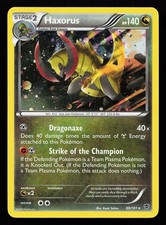 Haxorus is a Rare Holo Pokémon card from the Plasma Blast Pokémon TCG set, released 2011, illustrated by Kouki Saitou. It sits at card number 69 in the Plasma Blast checklist, classified as a Dragon-type Pokémon with 140 HP and the Stage 2 subtype.