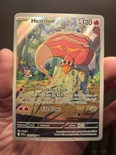 This printing is a high-value alt-art tier introduced in Scarlet & Violet, pulled roughly 1 in 60-90 packs depending on set (the card is labeled "Illustration Rare" on the checklist). Heatmor has been printed 9 times across different sets - earlier or limited printings often command premiums even when the rarity tier is identical.