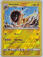 Heliolisk is a Uncommon Pokémon card from the Forbidden Light Pokémon TCG set, released 2018, illustrated by otumami. It sits at card number 38 in the Forbidden Light checklist, classified as a Lightning-type Pokémon with 100 HP and the Stage 1 subtype.