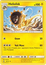 This printing is an uncommon card, pulled roughly 3 per pack (the card is labeled "Uncommon" on the checklist). Heliolisk has been printed 9 times across different sets - earlier or limited printings often command premiums even when the rarity tier is identical.