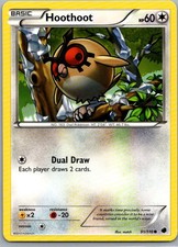 This printing is a common card, the base-tier pull (the card is labeled "Common" on the checklist). Hoothoot has been printed 9 times across different sets - earlier or limited printings often command premiums even when the rarity tier is identical.