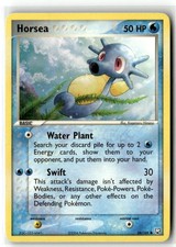 This printing is a common card, the base-tier pull (the card is labeled "Common" on the checklist). Horsea has been printed 9 times across different sets - earlier or limited printings often command premiums even when the rarity tier is identical.