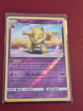 Hypno is a Rare Pokémon card from the Unbroken Bonds Pokémon TCG set, released 2018, illustrated by sui. It sits at card number 72 in the Unbroken Bonds checklist, classified as a Psychic-type Pokémon with 110 HP and the Stage 1 subtype.