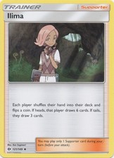 Ilima is a Uncommon Trainer card from the Sun & Moon Pokémon TCG set, released 2017, illustrated by Ken Sugimori. It sits at card number 121 in the Sun & Moon checklist and the Supporter subtype.