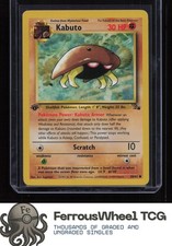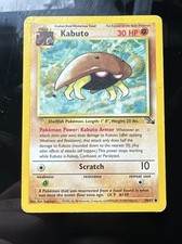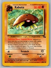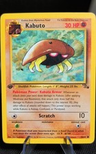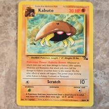 Kabuto is a Common Pokémon card from the Fossil Pokémon TCG set, released 1999, illustrated by Ken Sugimori. It sits at card number 50 in the Fossil checklist, classified as a Fighting-type Pokémon with 30 HP and the Stage 1 subtype.