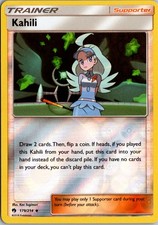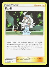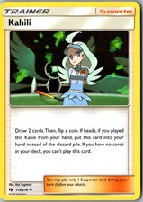 Kahili is a Uncommon Trainer card from the Lost Thunder Pokémon TCG set, released 2018, illustrated by Ken Sugimori. It sits at card number 179 in the Lost Thunder checklist and the Supporter subtype.