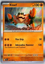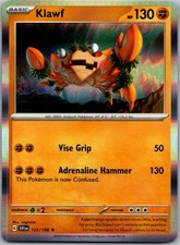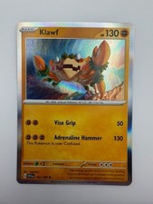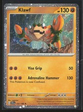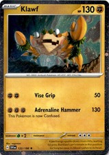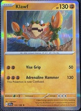 Klawf is a Rare Pokémon card from the Scarlet & Violet Pokémon TCG set, released 2023, illustrated by nagimiso. It sits at card number 122 in the Scarlet & Violet checklist, classified as a Fighting-type Pokémon with 130 HP and the Basic subtype.