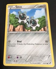 Klink is a Common Pokémon card from the Black & White Pokémon TCG set, released 2011, illustrated by Masakazu Fukuda. It sits at card number 74 in the Black & White checklist, classified as a Metal-type Pokémon with 60 HP and the Basic subtype.