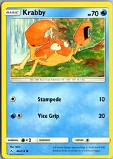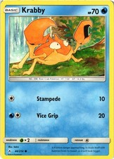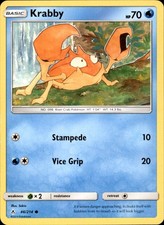 This printing is a common card, the base-tier pull (the card is labeled "Common" on the checklist). Krabby has been printed 9 times across different sets - earlier or limited printings often command premiums even when the rarity tier is identical.