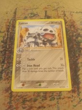 Lairon is a Uncommon Pokémon card from the Holon Phantoms Pokémon TCG set, released 2003, illustrated by Masakazu Fukuda. It sits at card number 45 in the Holon Phantoms checklist, classified as a Metal-type Pokémon with 80 HP and the Stage 1 subtype.