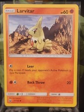 This printing is a common card, the base-tier pull (the card is labeled "Common" on the checklist). Larvitar has been printed 9 times across different sets - earlier or limited printings often command premiums even when the rarity tier is identical.