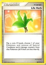Life Herb is a Uncommon Trainer card from the Platinum Pokémon TCG set, released 2009, illustrated by Ryo Ueda. It sits at card number 108 in the Platinum checklist and the Item subtype.