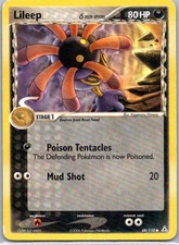 Lileep δ is a Common Pokémon card from the Holon Phantoms Pokémon TCG set, released 2003, illustrated by Kagemaru Himeno. It sits at card number 68 in the Holon Phantoms checklist, classified as a Darkness-type Pokémon with 80 HP and the Stage 1 subtype.