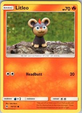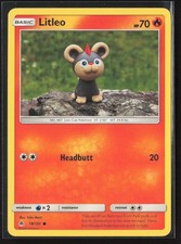 Litleo is a Common Pokémon card from the Forbidden Light Pokémon TCG set, released 2018, illustrated by Yuka Morii. It sits at card number 18 in the Forbidden Light checklist, classified as a Fire-type Pokémon with 70 HP and the Basic subtype.