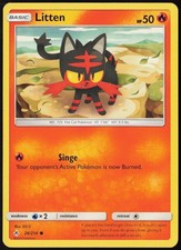 This printing is a common card, the base-tier pull (the card is labeled "Common" on the checklist). Litten has been printed 9 times across different sets - earlier or limited printings often command premiums even when the rarity tier is identical.