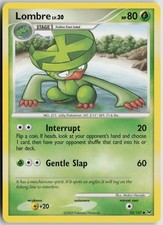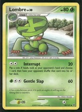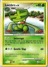 Lombre is a Uncommon Pokémon card from the Platinum Pokémon TCG set, released 2009, illustrated by Midori Harada. It sits at card number 52 in the Platinum checklist, classified as a Grass-type Pokémon with 80 HP and the Stage 1 subtype.
