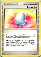 Lucky Egg is a Uncommon Trainer card from the Arceus Pokémon TCG set, released 2009, illustrated by Nobuyuki Fujimoto. It sits at card number 88 in the Arceus checklist and the Pokémon Tool subtype.