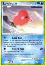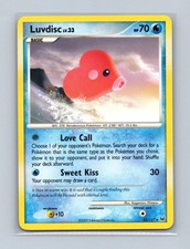 Luvdisc is a Rare Pokémon card from the Platinum Pokémon TCG set, released 2009, illustrated by Kagemaru Himeno. It sits at card number 35 in the Platinum checklist, classified as a Water-type Pokémon with 70 HP and the Basic subtype.