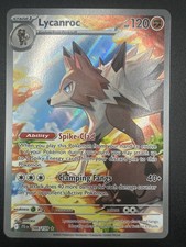 This printing is a high-value alt-art tier introduced in Scarlet & Violet, pulled roughly 1 in 60-90 packs depending on set (the card is labeled "Illustration Rare" on the checklist). Lycanroc has been printed 9 times across different sets - earlier or limited printings often command premiums even when the rarity tier is identical.