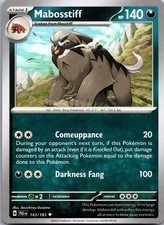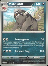 Mabosstiff has been printed 5 times across different sets. The variant you're looking at (#143 in Paldea Evolved) is one of them - see every other printing further down to compare art, rarity, and current market price across all versions.