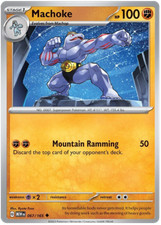 Machoke is a Uncommon Pokémon card from the 151 Pokémon TCG set, released 2024, illustrated by Ryuta Fuse. It sits at card number 67 in the 151 checklist, classified as a Fighting-type Pokémon with 100 HP and the Stage 1 subtype.