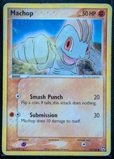 Machop is a Common Pokémon card from the Power Keepers Pokémon TCG set, released 2003, illustrated by Ken Sugimori. It sits at card number 53 in the Power Keepers checklist, classified as a Fighting-type Pokémon with 50 HP and the Basic subtype.