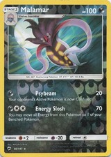 Malamar is a Rare Pokémon card from the Burning Shadows Pokémon TCG set, released 2017, illustrated by Mitsuhiro Arita. It sits at card number 90 in the Burning Shadows checklist, classified as a Darkness-type Pokémon with 100 HP and the Stage 1 subtype.