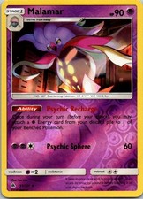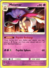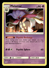 Malamar is a Rare Pokémon card from the Forbidden Light Pokémon TCG set, released 2018, illustrated by You Iribi. It sits at card number 51 in the Forbidden Light checklist, classified as a Psychic-type Pokémon with 90 HP and the Stage 1 subtype.