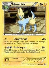 Manectric is a Rare Pokémon card from the Dragons Exalted Pokémon TCG set, released 2011, illustrated by Naoyo Kimura. It sits at card number 43 in the Dragons Exalted checklist, classified as a Lightning-type Pokémon with 90 HP and the Stage 1 subtype.