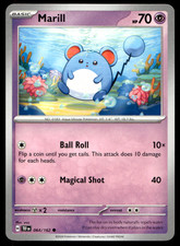 This printing is a common card, the base-tier pull (the card is labeled "Common" on the checklist). Marill has been printed 9 times across different sets - earlier or limited printings often command premiums even when the rarity tier is identical.