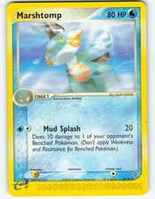 Marshtomp is a Uncommon Pokémon card from the Dragon Pokémon TCG set, released 2003, illustrated by Atsuko Nishida. It sits at card number 36 in the Dragon checklist, classified as a Water-type Pokémon with 80 HP and the Stage 1 subtype.