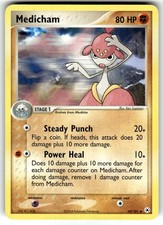 Medicham is a Uncommon Pokémon card from the Hidden Legends Pokémon TCG set, released 2003, illustrated by Ken Sugimori. It sits at card number 42 in the Hidden Legends checklist, classified as a Fighting-type Pokémon with 80 HP and the Stage 1 subtype.