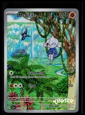 This printing is a high-value alt-art tier introduced in Scarlet & Violet, pulled roughly 1 in 60-90 packs depending on set (the card is labeled "Illustration Rare" on the checklist). Meditite has been printed 9 times across different sets - earlier or limited printings often command premiums even when the rarity tier is identical.