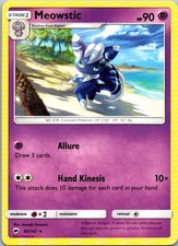 This printing is a standard rare, pulled roughly 1 per pack (the card is labeled "Rare" on the checklist). Meowstic has been printed 9 times across different sets - earlier or limited printings often command premiums even when the rarity tier is identical.