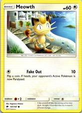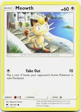 This printing is a common card, the base-tier pull (the card is labeled "Common" on the checklist). Meowth has been printed 9 times across different sets - earlier or limited printings often command premiums even when the rarity tier is identical.