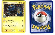 Metang δ is a Uncommon Pokémon card from the Delta Species Pokémon TCG set, released 2003, illustrated by Hajime Kusajima. It sits at card number 49 in the Delta Species checklist, classified as a Lightning-type Pokémon with 80 HP and the Stage 1 subtype.