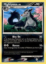 This printing is an uncommon card, pulled roughly 3 per pack (the card is labeled "Uncommon" on the checklist). Mightyena has been printed 9 times across different sets - earlier or limited printings often command premiums even when the rarity tier is identical.