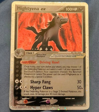 This printing is a standard holofoil rare - roughly 1 per booster pack in modern sets (the card is labeled "Rare Holo EX" on the checklist). This is the only printing of Mightyena ex currently indexed.