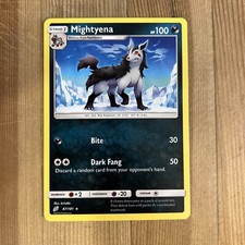 Mightyena is a Rare Pokémon card from the Team Up Pokémon TCG set, released 2018, illustrated by kirisAki. It sits at card number 87 in the Team Up checklist, classified as a Darkness-type Pokémon with 100 HP and the Stage 1 subtype.