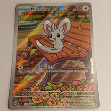 This printing is a high-value alt-art tier introduced in Scarlet & Violet, pulled roughly 1 in 60-90 packs depending on set (the card is labeled "Illustration Rare" on the checklist). Minccino has been printed 9 times across different sets - earlier or limited printings often command premiums even when the rarity tier is identical.