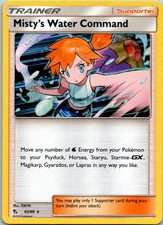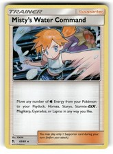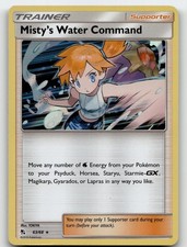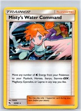 This printing is a standard holofoil rare - roughly 1 per booster pack in modern sets (the card is labeled "Rare Holo" on the checklist). This is the only printing of Misty's Water Command currently indexed.