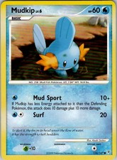 This printing is a common card, the base-tier pull (the card is labeled "Common" on the checklist). Mudkip has been printed 9 times across different sets - earlier or limited printings often command premiums even when the rarity tier is identical.