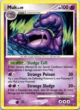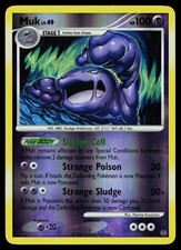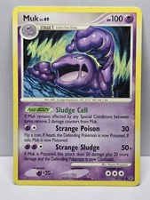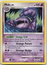 Muk is a Uncommon Pokémon card from the Platinum Pokémon TCG set, released 2009, illustrated by Hajime Kusajima. It sits at card number 57 in the Platinum checklist, classified as a Psychic-type Pokémon with 100 HP and the Stage 1 subtype.