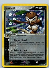 Nuzleaf is a Uncommon Pokémon card from the Hidden Legends Pokémon TCG set, released 2003, illustrated by Hisao Nakamura. It sits at card number 45 in the Hidden Legends checklist, classified as a Darkness-type Pokémon with 70 HP and the Stage 1 subtype.