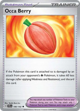 Occa Berry is a Uncommon Trainer card from the Stellar Crown Pokémon TCG set, released 2025. It sits at card number 140 in the Stellar Crown checklist and the Pokémon Tool subtype.