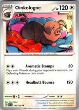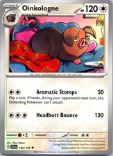 Oinkologne is a Uncommon Pokémon card from the Journey Together Pokémon TCG set, released 2026, illustrated by Mina Nakai. It sits at card number 140 in the Journey Together checklist, classified as a Colorless-type Pokémon with 120 HP and the Stage 1 subtype.