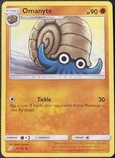 Omanyte is a Uncommon Pokémon card from the Team Up Pokémon TCG set, released 2018, illustrated by Midori Harada. It sits at card number 75 in the Team Up checklist, classified as a Fighting-type Pokémon with 90 HP and the Stage 1 subtype.