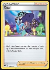 Opal is a Uncommon Trainer card from the Vivid Voltage Pokémon TCG set, released 2021, illustrated by take. It sits at card number 158 in the Vivid Voltage checklist and the Supporter subtype.