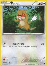 Patrat is a Common Pokémon card from the Black & White Pokémon TCG set, released 2011, illustrated by Masakazu Fukuda. It sits at card number 78 in the Black & White checklist, classified as a Colorless-type Pokémon with 60 HP and the Basic subtype.