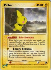 This printing is a standard rare, pulled roughly 1 per pack (the card is labeled "Rare" on the checklist). Pichu has been printed 9 times across different sets - earlier or limited printings often command premiums even when the rarity tier is identical.